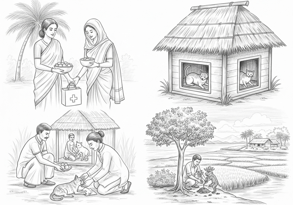 আমাদের স্বপ্ন এমন একটি সমাজ, যেখানে সহমর্মিতা আর সেবার ছোঁয়া পৌঁছে যায় প্রতিটি জীবনে। আমাদের কিছু প্রধান প্রকল্প 🧑🤝🧑 মানবসেবা : খাদ্য ও চিকিৎসা সহায়তা, মানসিক ও আইনি সহায়তা, শিক্ষা সহায়তা, দুর্যোগকালীন সহায়তা।🐾 প্রাণী সেবা: প্রাণী উদ্ধার ও আশ্রয়, প্রাণীকল্যাণ ও চিকিৎসা সহায়তা।🌿 প্রকৃতি সেবা: বৃক্ষরোপণ ও সবুজায়ন, বর্জ্য ব্যবস্থাপনা ও পরিচ্ছন্নতা কার্যক্রম। 🧑🤝🧑 মানবসেবা – আমাদের চারটি মূল উদ্যোগ ১️. খাদ্য ও চিকিৎসা সহায়তা অভুক্ত মানুষদের জন্য পুষ্টিকর খাবার বিতরণ এবং দরিদ্র অসুস্থদের প্রাথমিক চিকিৎসা প্রদান।আমাদের লক্ষ্য—কেউ যেন ক্ষুধা বা চিকিৎসার অভাবে কষ্ট না পায়।খাদ্য ও স্বাস্থ্য সেবা দিয়ে আমরা গড়ে তুলি সহমর্মিতার সমাজ। ২️. মানসিক ও আইনি সহায়তা মানসিক চাপ ও সামাজিক সমস্যায় ভুগছেন এমন মানুষদের জন্য বিনামূল্যে কাউন্সেলিং সেবা।দরিদ্র ও অসহায়দের জন্য আইনগত পরামর্শ ও প্রয়োজনীয় সহায়তা প্রদান।মানসিক ও আইনি সহায়তায় আমরা নিরাপদ ও ন্যায়ভিত্তিক সমাজ গড়তে চাই। ৩️. শিক্ষা সহায়তা আর্থিকভাবে অসচ্ছল শিশুদের জন্য বিনামূল্যে পাঠদান ও শিক্ষা উপকরণ বিতরণ।জ্ঞানের আলো ছড়িয়ে দারিদ্র্যের অন্ধকার দূর করাই আমাদের লক্ষ্য।শিক্ষার সুযোগ বাড়িয়ে আমরা গড়ে তুলি সমৃদ্ধ ভবিষ্যৎ। ৪️. দুর্যোগকালীন সহায়তা প্রাকৃতিক দুর্যোগের সময় ক্ষতিগ্রস্ত পরিবারদের জন্য জরুরি খাদ্য, ওষুধ ও ত্রাণ সহায়তা।দ্রুত সাড়া ও ত্রাণ সেবার মাধ্যমে আমরা জীবন বাঁচাতে কাজ করি।মানবিক সহায়তায় গড়ে তুলি দুর্যোগ-সহনশীল বাংলাদেশ। 🐾 প্রাণী সেবা ও 🌿প্রকৃতি সেবা – আমাদের চারটি মূল উদ্যোগ ১️. প্রাণী উদ্ধার ও আশ্রয় অসুস্থ, আহত বা পরিত্যক্ত প্রাণীদের উদ্ধার করে নিরাপদ আশ্রয় দেওয়া।চিকিৎসা ও যত্নের মাধ্যমে তাদের নতুন জীবনের সুযোগ করে দেওয়া।সহমর্মিতায় গড়ে তুলি প্রাণীবান্ধব সমাজ। ২️. প্রাণীকল্যাণ ও চিকিৎসা সহায়তা রাস্তার কুকুর-বিড়ালসহ অন্যান্য প্রাণীর জন্য টিকা ও চিকিৎসা প্রদান।নিয়মিত খাদ্য ও যত্নসেবা দিয়ে প্রাণীদের সুরক্ষিত রাখা।আমাদের লক্ষ্য—প্রাণীদের সুস্থ ও মর্যাদাপূর্ণ জীবন নিশ্চিত করা। ১️. বৃক্ষরোপণ ও সবুজায়ন গ্রাম ও শহরে গাছ লাগিয়ে পরিবেশ সংরক্ষণে অবদান রাখা।জলবায়ু পরিবর্তনের ঝুঁকি কমাতে সবুজায়ন কার্যক্রম পরিচালনা।প্রকৃতিকে রক্ষা করে ভবিষ্যৎ প্রজন্মের জন্য টেকসই পৃথিবী গড়া। ২️. বর্জ্য ব্যবস্থাপনা ও পরিচ্ছন্নতা কার্যক্রম প্লাস্টিক ও বর্জ্য কমাতে জনসচেতনতা তৈরি করা।পুনর্ব্যবহার ও পরিচ্ছন্নতা অভিযানের মাধ্যমে সুস্থ পরিবেশ নিশ্চিত করা।পরিচ্ছন্ন পরিবেশ মানেই সুস্থ ও সুন্দর সমাজ।